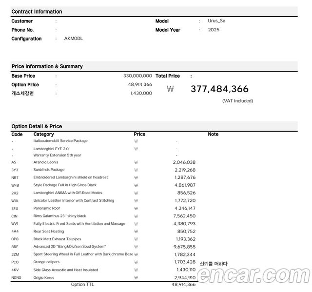 Lamborghini Urus из Кореи Encar